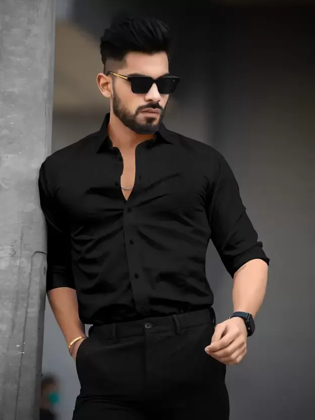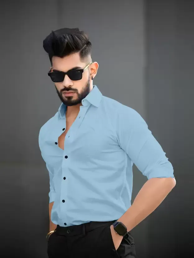 Men Regular Fit Solid Cut Away Collar Casual Shirt